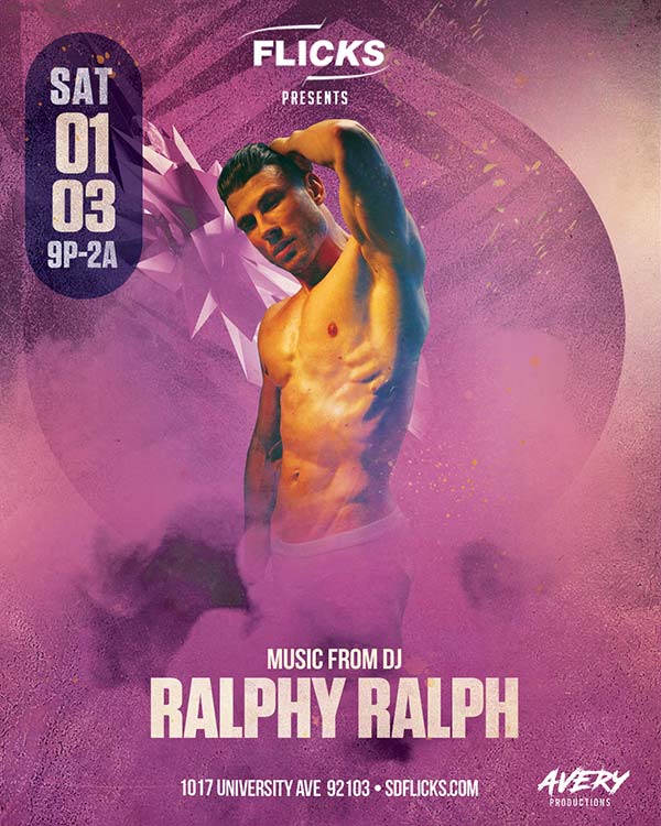 Saturdays January 3 @ 9:00 pm - January 4 @ 2:00 am Flicks 1017 University Ave, San Diego, CA, United States Join us at Flicks for Saturday night fun!